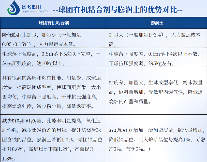 建杰球團(tuán)礦有機(jī)·粘合劑是以增粘劑、增強(qiáng)劑、改性劑等多種高分子有機(jī)物復(fù)合而成的純有機(jī)粘合劑,含有高粘結(jié)力成分,中低溫固結(jié)成分,具有親水性、絡(luò)合性、粘結(jié)性、低溫固結(jié)性、耐熱性及粘合劑干燥固結(jié)后的嚙合力等性能。